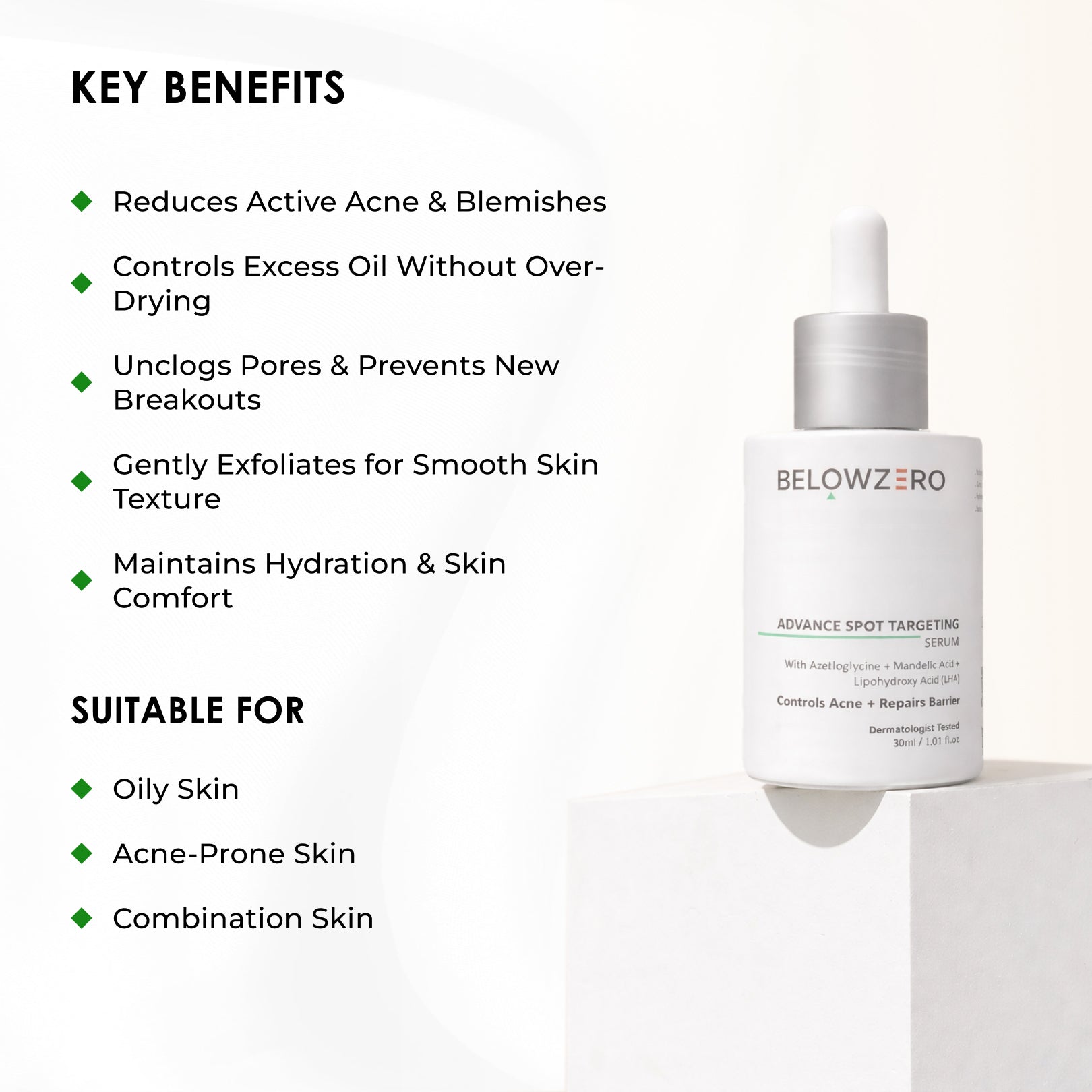 A lightweight, dermatologist-inspired serum formulated for acne-prone and oily skin. This