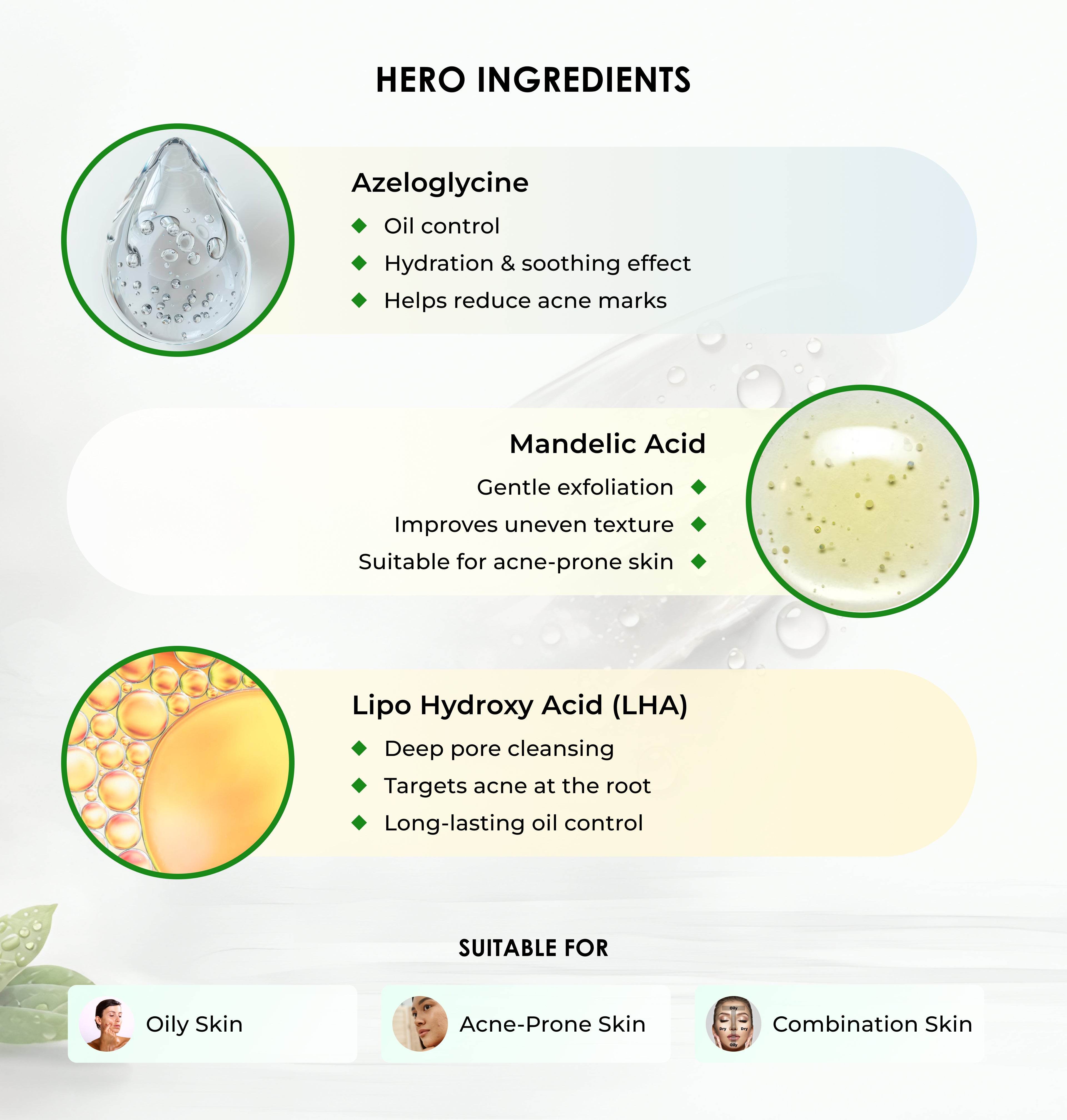 With Azeloglycine, Mandelic Acid & Lipo Hydroxy Acid (LHA)
