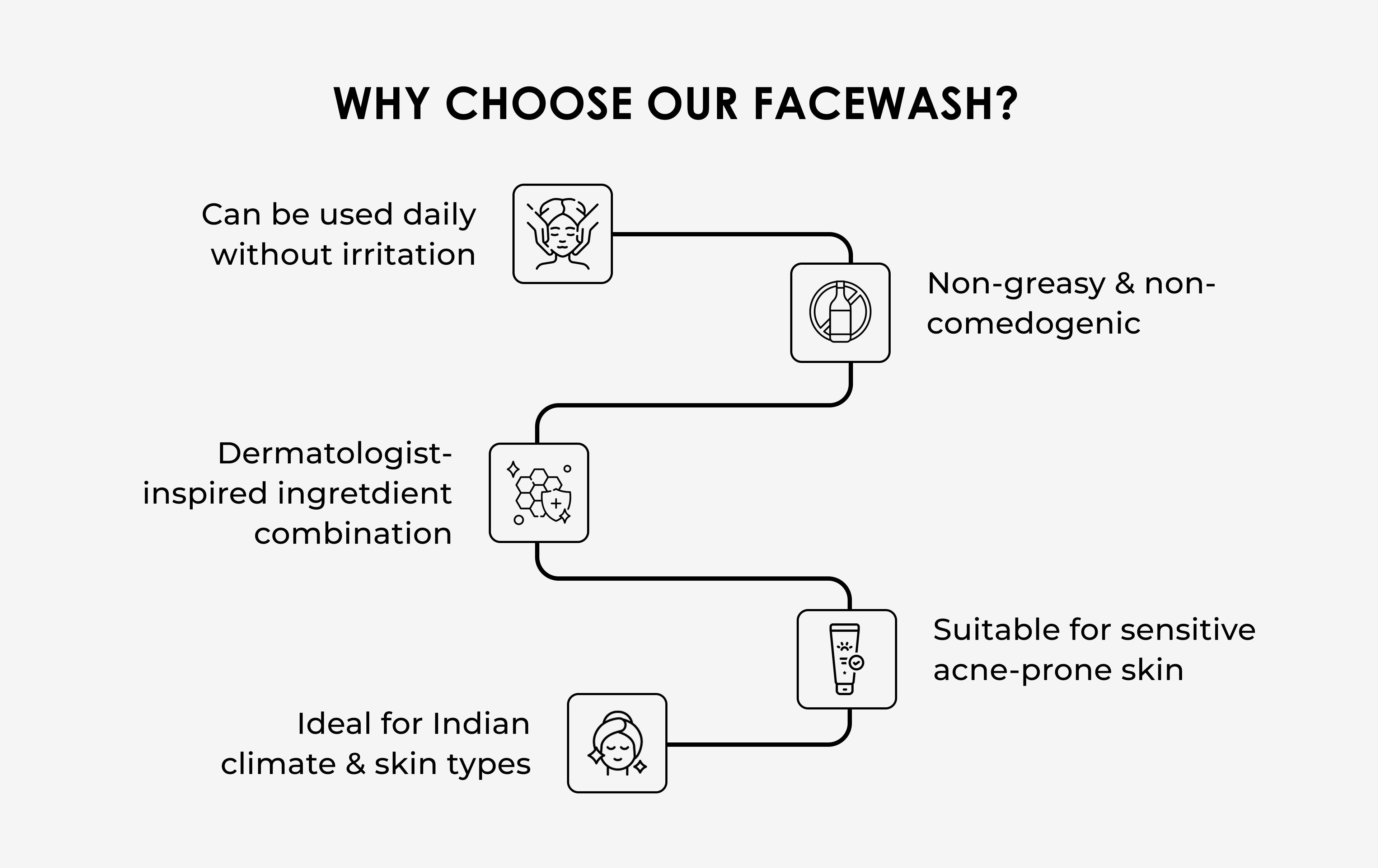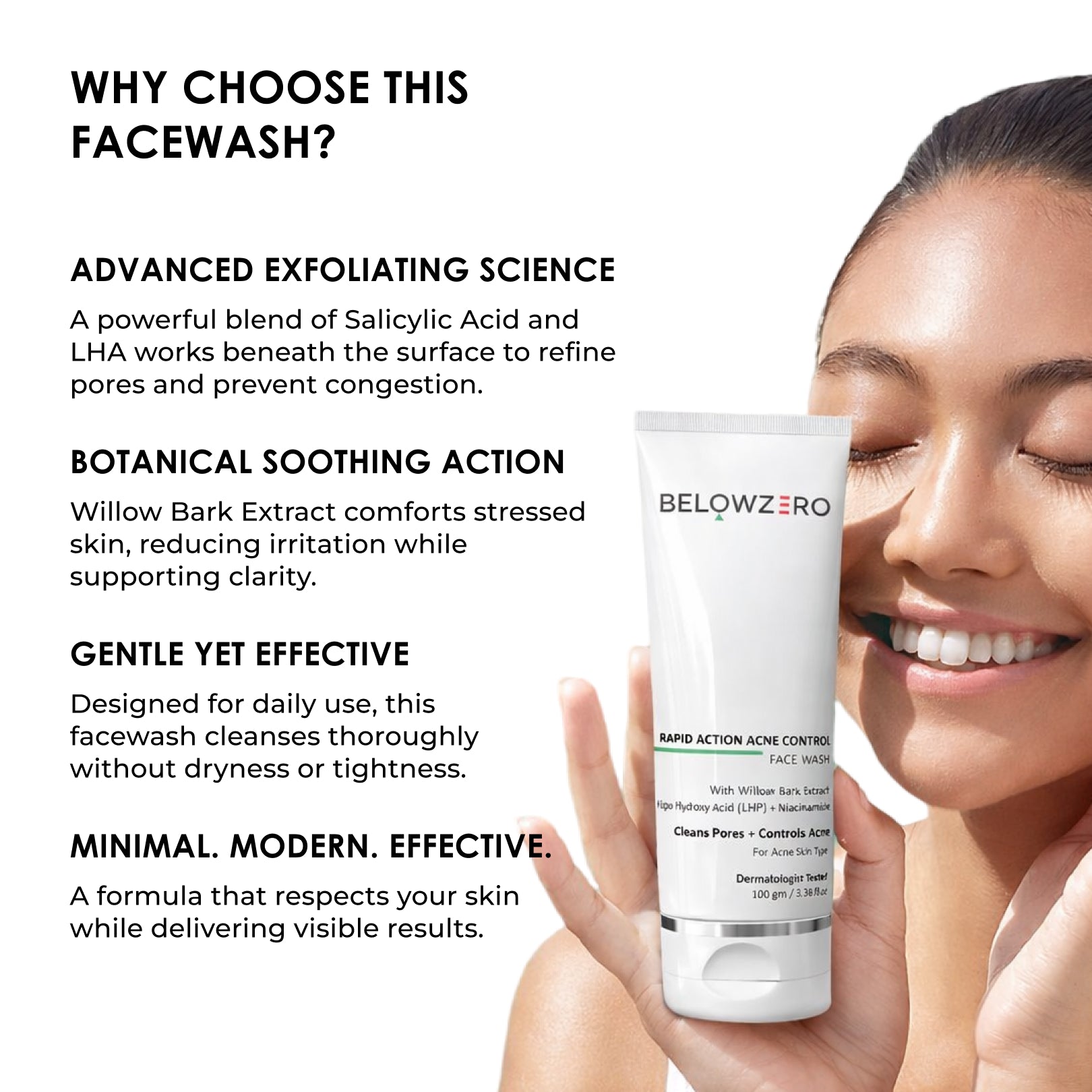A multi-action acne facewash that deeply cleanses pores and helps prevent breakouts.