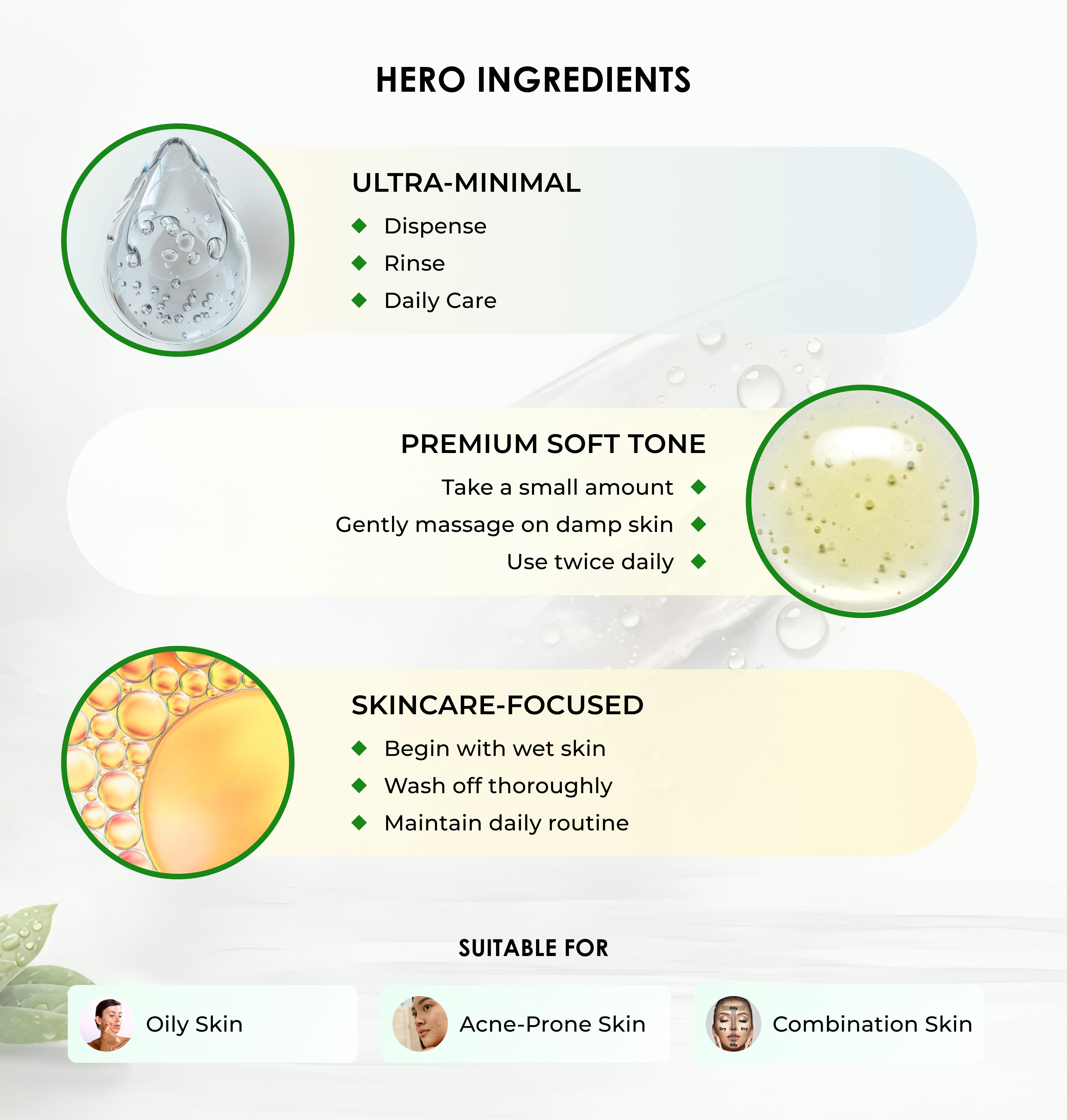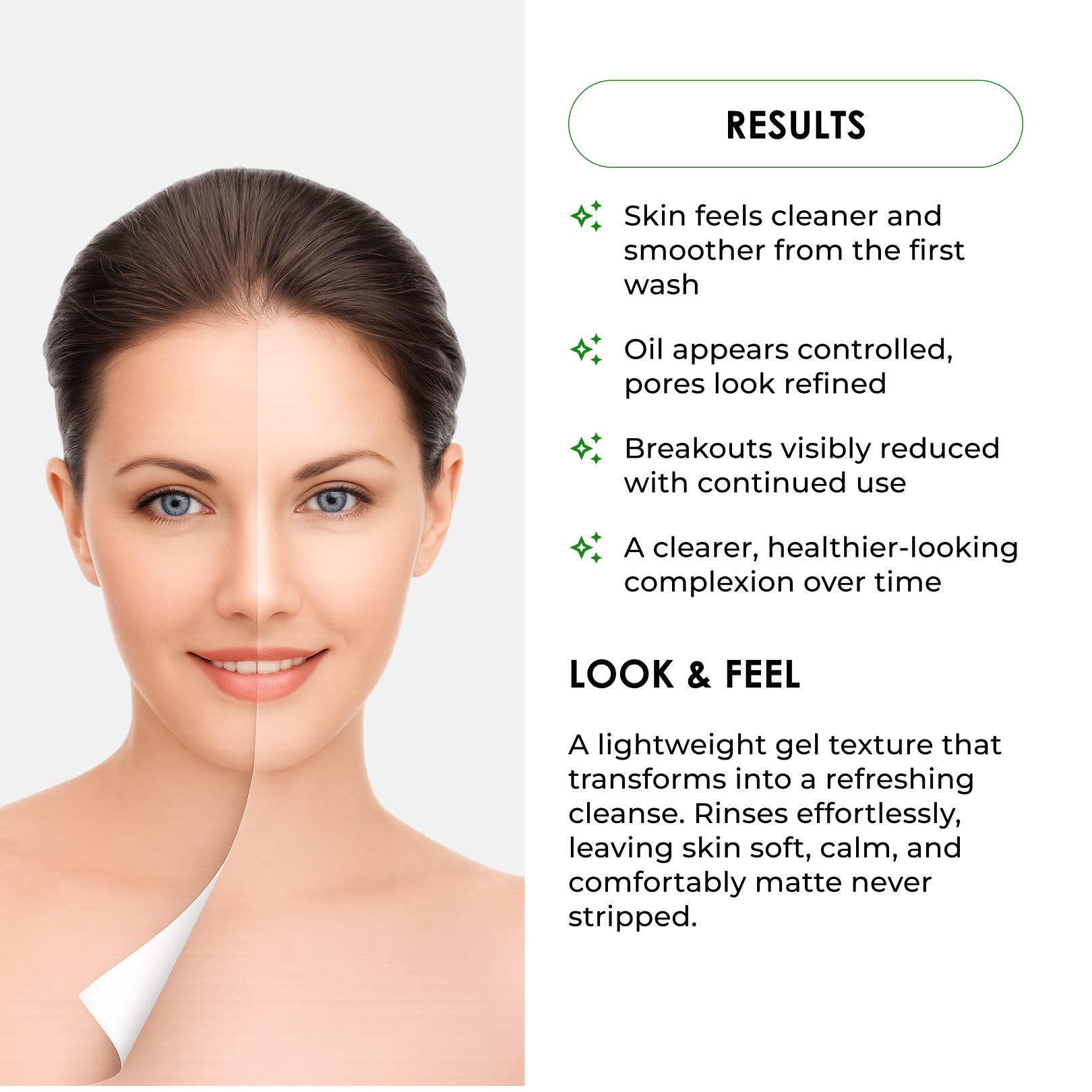 Powered by exfoliating acids and soothing botanicals, it removes excess oil and impurities